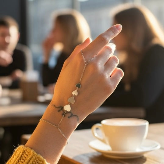 Bronze body and handpicked fine glass crystals stones, nickel free. Suitable for sensitive skin. Each product is customly crafted.
