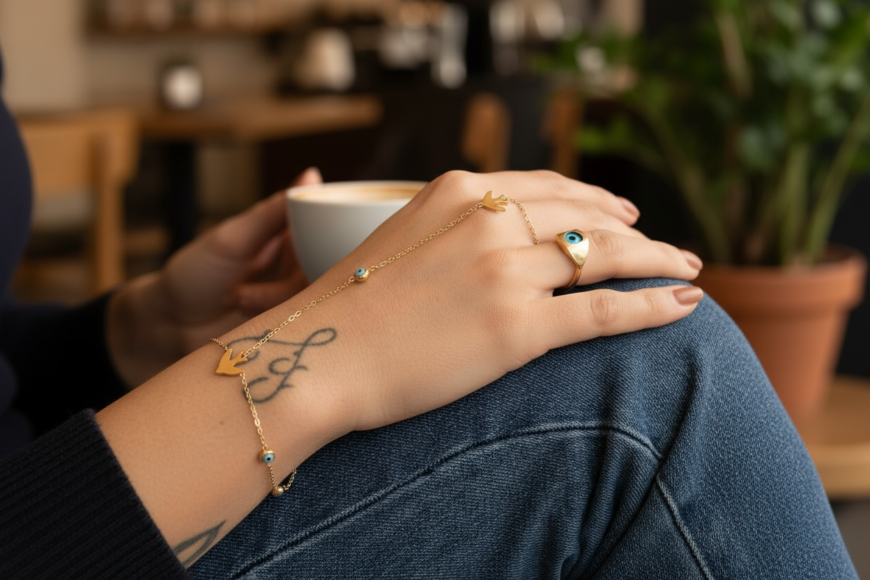Bronze body and handpicked fine glass crystals stones, nickel free. Suitable for sensitive skin. Each product is customly crafted.