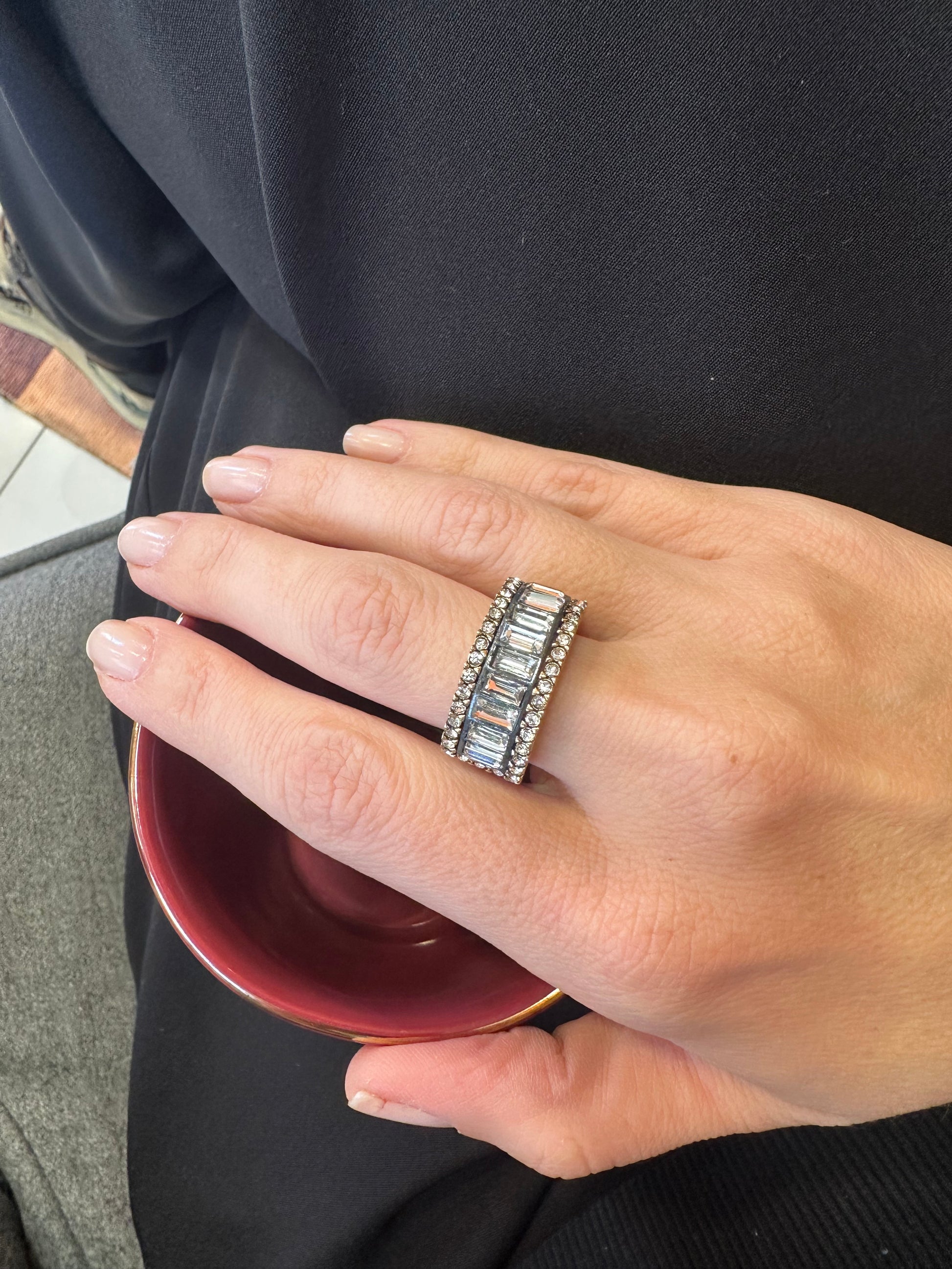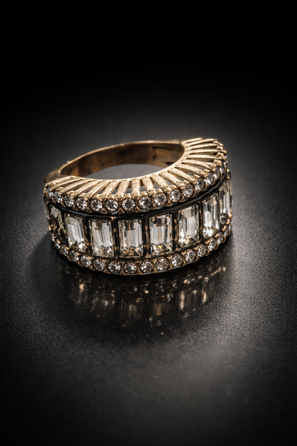 Bronze body and handpicked fine glass crystals stones, nickel free. Suitable for sensitive skin. Each product is customly crafted.