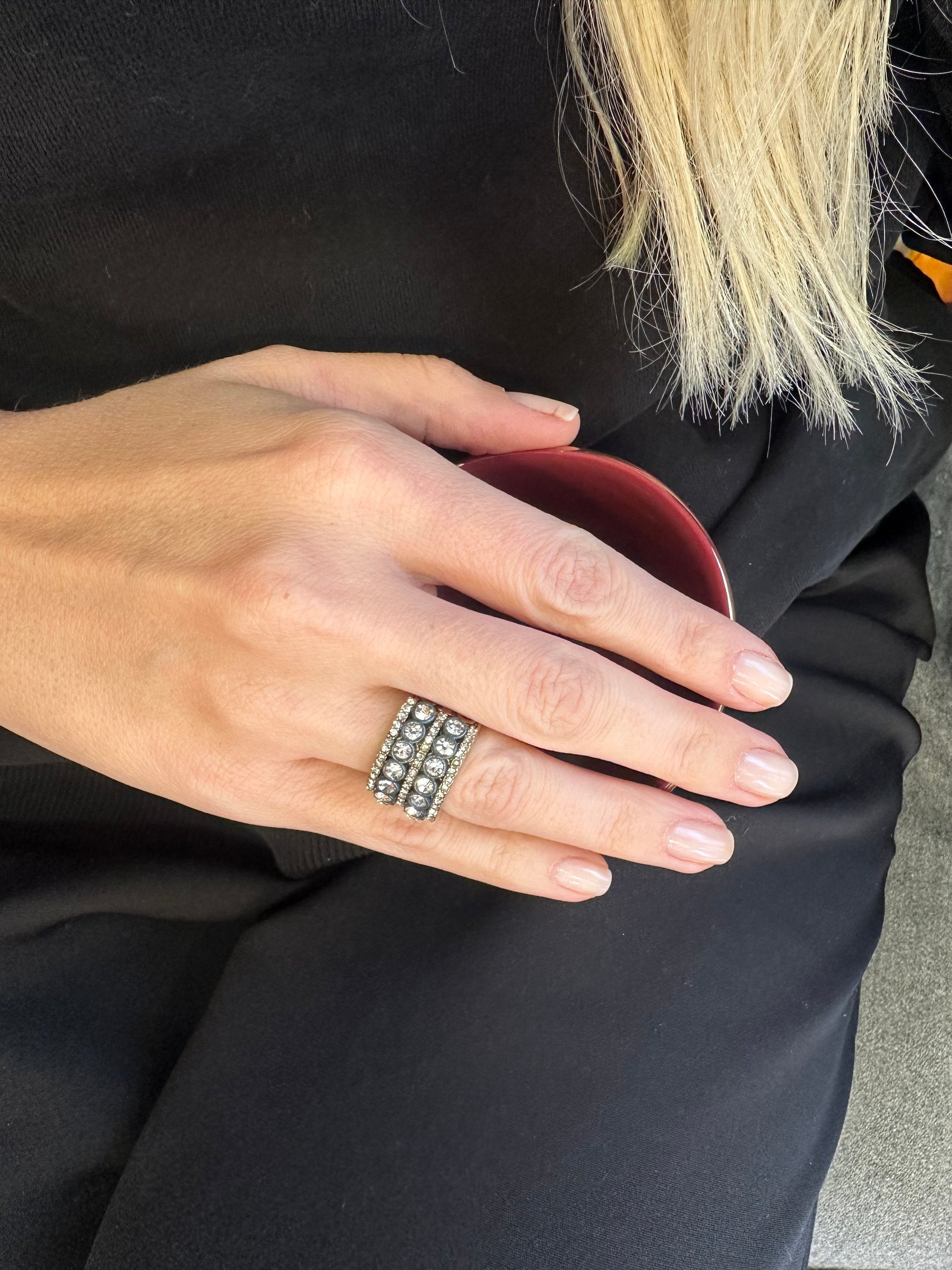 Bronze body and handpicked fine glass crystals stones, nickel free. Suitable for sensitive skin. Each product is customly crafted.