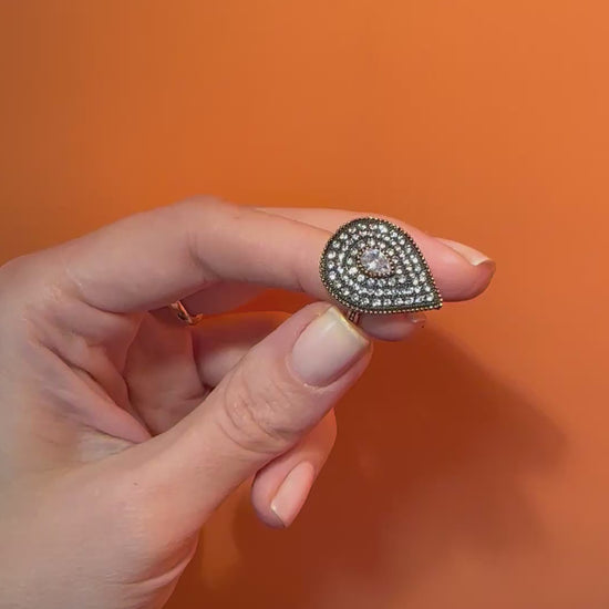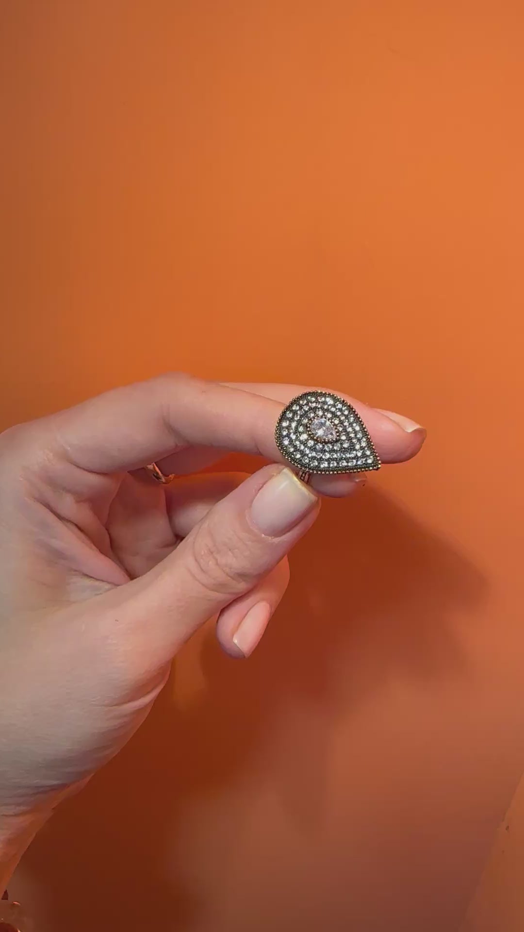 Bronze body and handpicked fine glass crystals stones, nickel free. Suitable for sensitive skin. Each product is customly crafted.