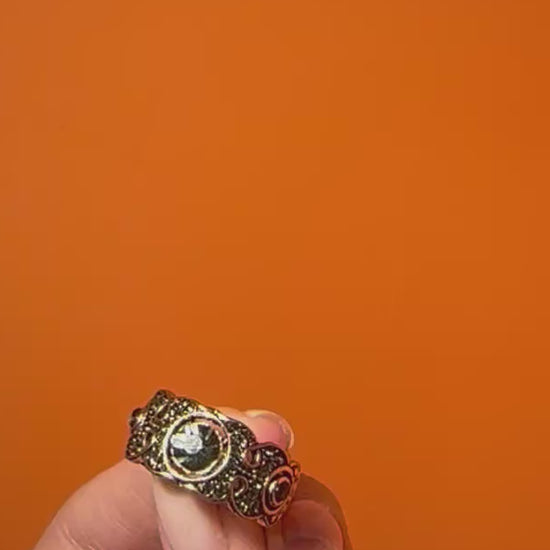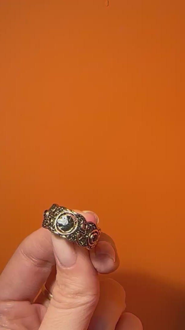 Bronze body and handpicked fine glass crystals stones, nickel free. Suitable for sensitive skin. Each product is customly crafted.