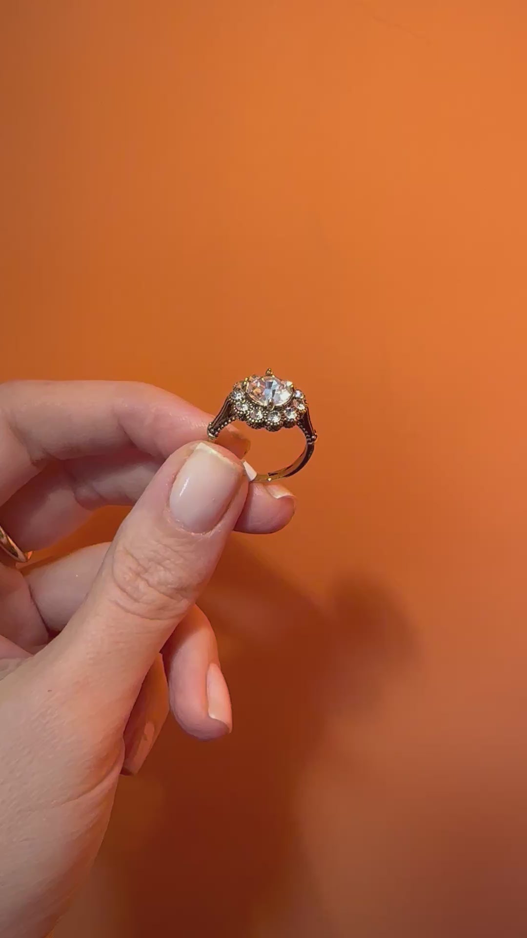 Bronze body and handpicked fine glass crystals stones, nickel free. Suitable for sensitive skin. Each product is customly crafted.