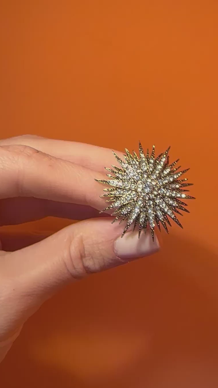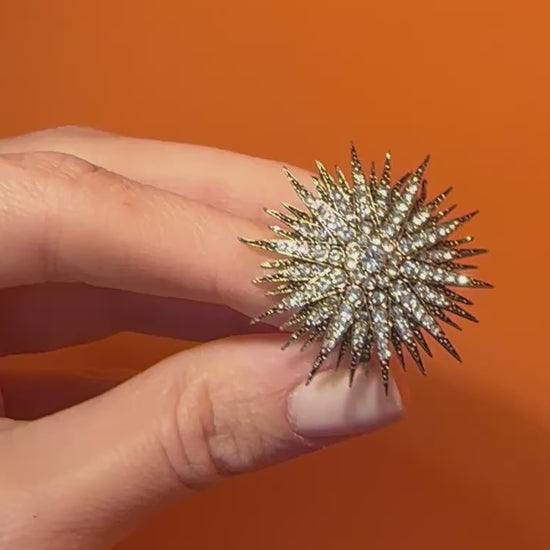 Bronze body and handpicked fine glass crystals stones, nickel free. Suitable for sensitive skin. Each product is customly crafted.